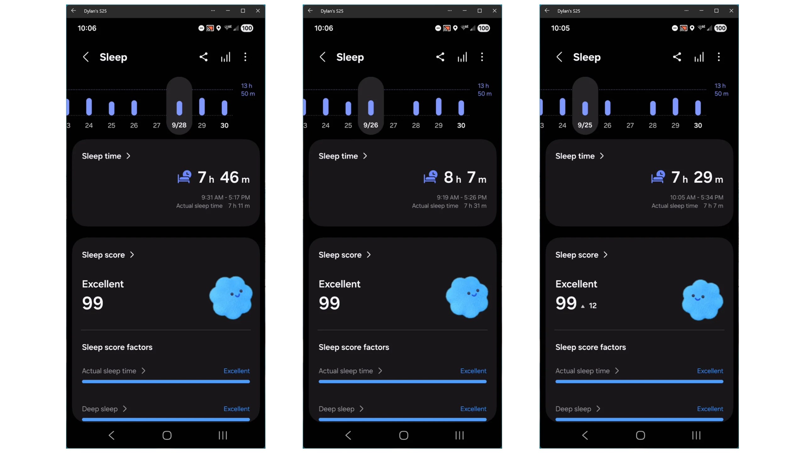 Son One UI 8 yazılım güncellemesiyle birlikte, Samsung Galaxy Watch kullanıcıları beklenmedik şekilde yüksek uyku puanları almaya başladı. Güncelleme, yatma zamanı rehberliği gibi yeni özellikleri getirirken uyku puanlama sisteminde bir değişiklik yapılmadı. Buna rağmen, normalde 80-90 arasında puana sahip olan kullanıcılar artık 100 üzerinden 99 hatta 100 puan almaya başladılar.