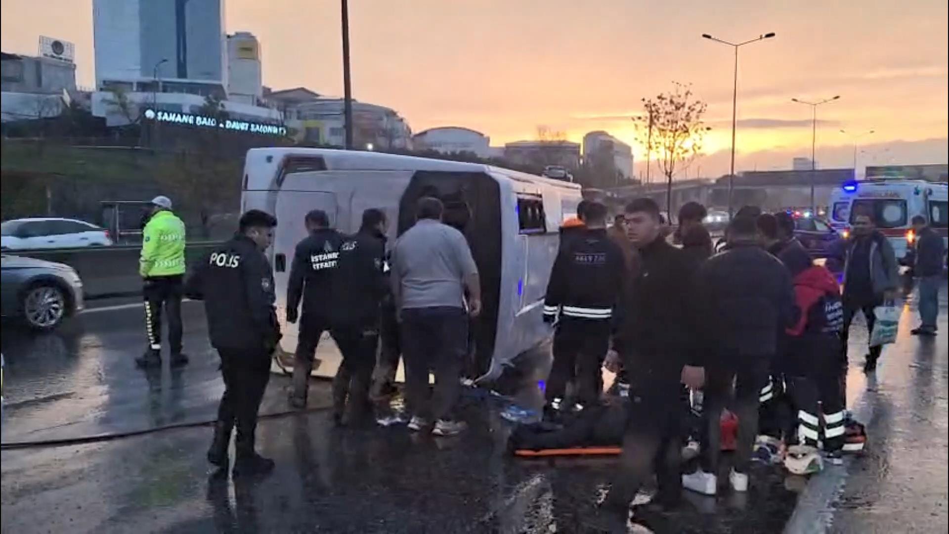 Havalimanı vardiya değişimi sabah trafiğine karışırken Maltepe D-100 Karayolu’nda yağmurla birlikte iyice kayganlaşan zeminde kaza yaşandı. Havalimanı çalışanlarını taşıyan servis minibüsü kontrolden çıkarak devrildi. Araç adeta yan yattıktan sonra birkaç metre sürüklendi.